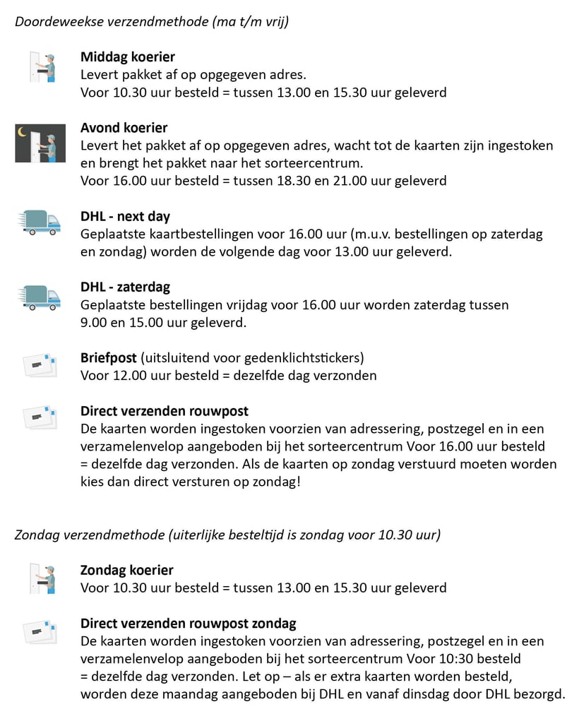 Onze verzendmethodes